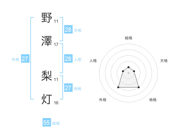 野澤 梨灯さんの総格は55画の1点!