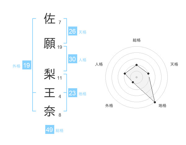佐願 梨王奈さんを姓名の画数から五運を鑑定
