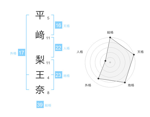 平﨑 梨王奈さんの地格は23画の5点!