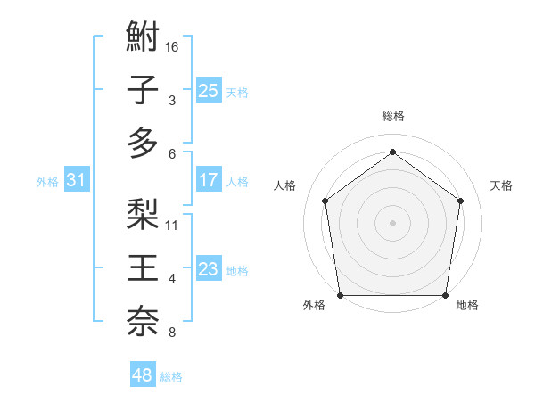 鮒子多 梨王奈さんを姓名の画数から五運を鑑定