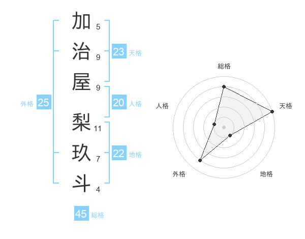 加治屋 梨玖斗さんの天格は23画の5点