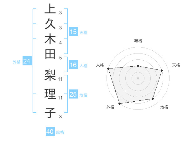 上久木田 梨理子さんを姓名の画数から五運を鑑定