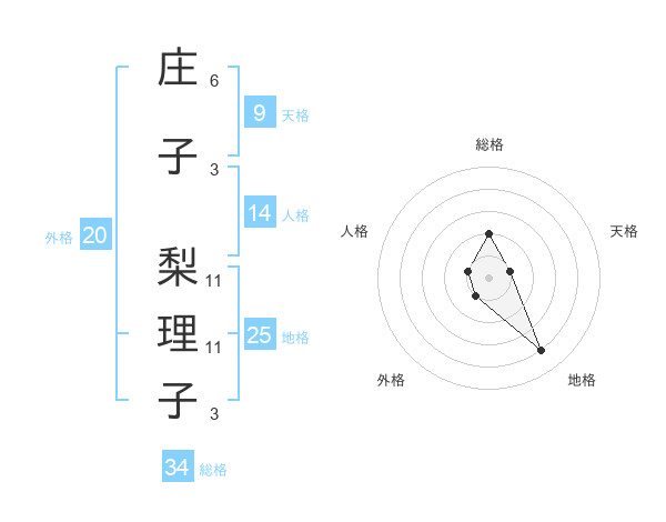 庄子 梨理子さんの総格は34画の2点!