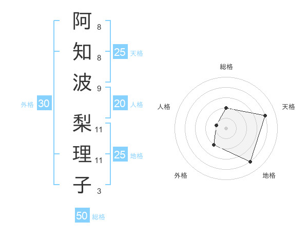 阿知波 梨理子さんの総格は50画の2点!