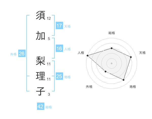 須加 梨理子さんを姓名の画数から五運を鑑定