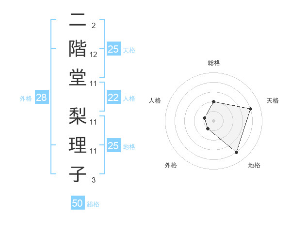 二階堂 梨理子さんを姓名の画数から五運を鑑定