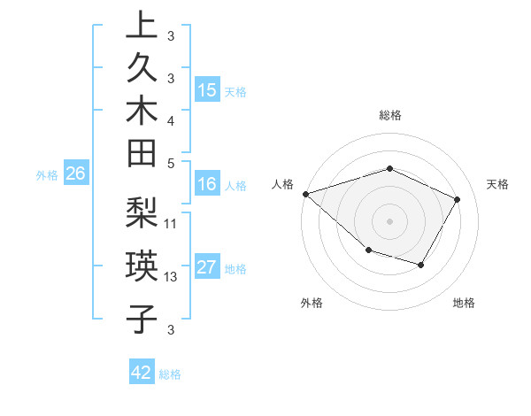上久木田 梨瑛子さんを姓名の画数から五運を鑑定