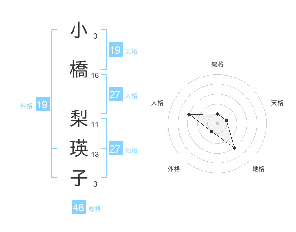 小橋 梨瑛子さんの地格は27画の3点!