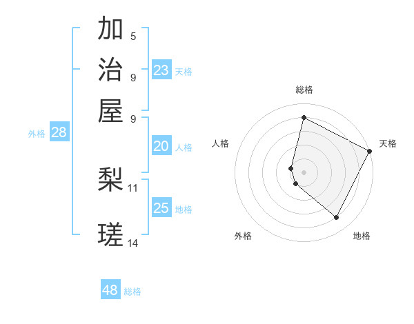 加治屋 梨瑳さんの天格は23画の5点