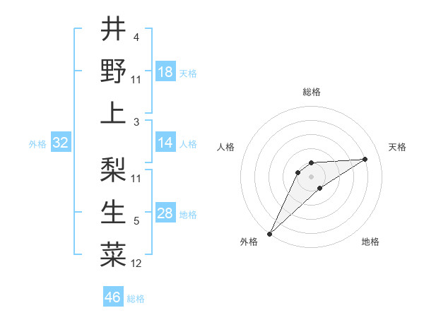 井野上 梨生菜さんを姓名の画数から五運を鑑定