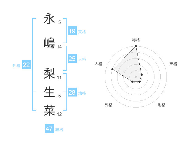 永嶋 梨生菜さんを姓名の画数から五運を鑑定