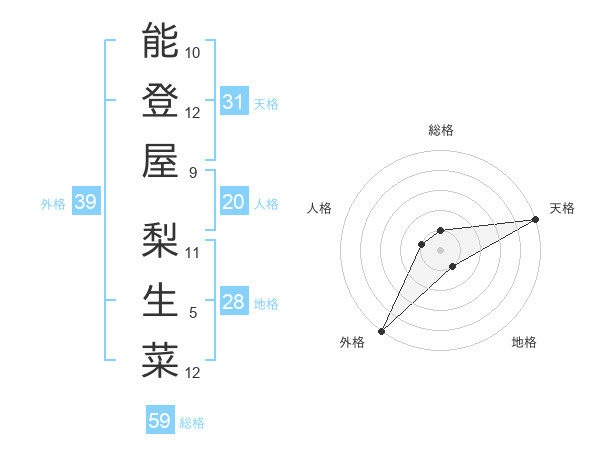 能登屋 梨生菜さんを姓名の画数から五運を鑑定