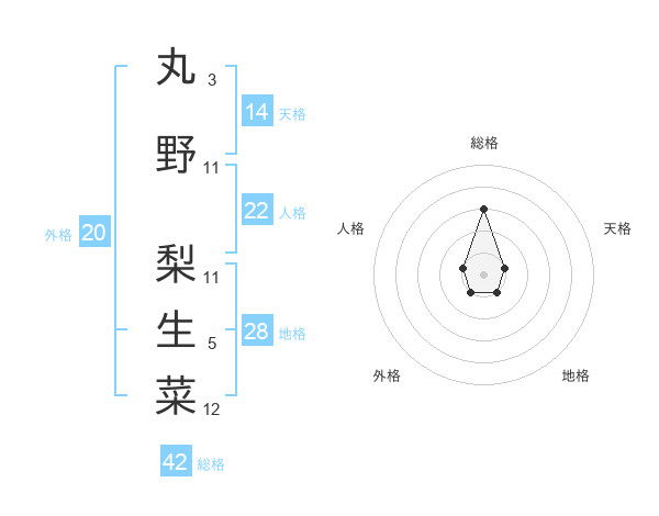 丸野 梨生菜さんの総格は42画の3点!