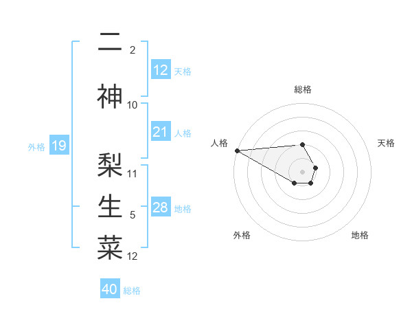 二神 梨生菜さんを姓名の画数から五運を鑑定