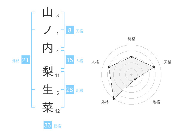 山ノ内 梨生菜さんを姓名の画数から五運を鑑定