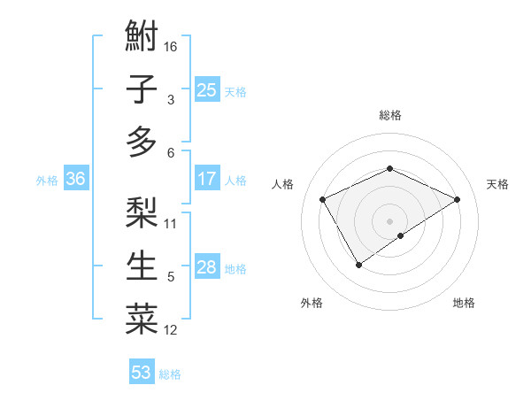 鮒子多 梨生菜さんを姓名の画数から五運を鑑定