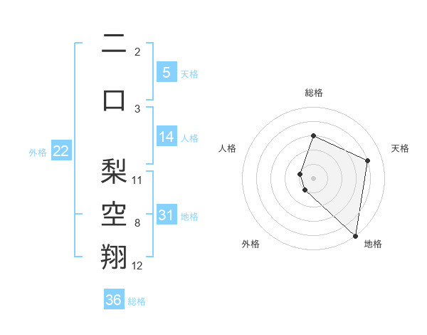 二口 梨空翔さんを姓名の画数から五運を鑑定