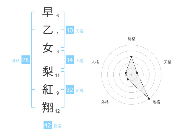 早乙女 梨紅翔さんの総格は42画の3点!