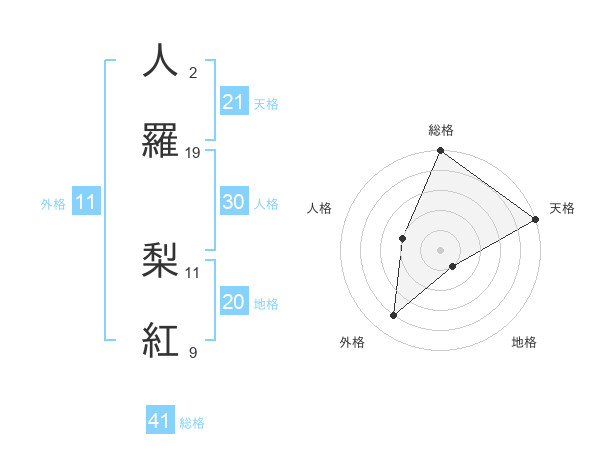 人羅 梨紅さんの天格は21画の5点!