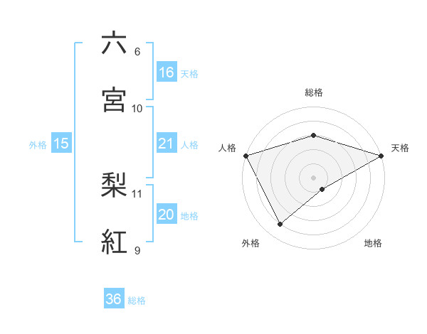 六宮 梨紅さんを姓名の画数から五運を鑑定