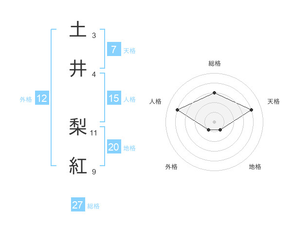 土井 梨紅さんの総格は27画の3点!