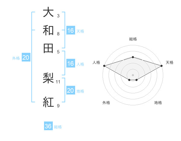 大和田 梨紅さんの天格は16画の5点!
