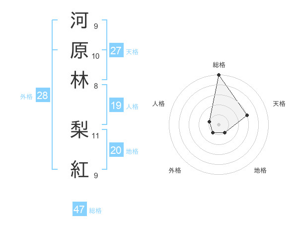 河原林 梨紅さんの総格は47画の5点!