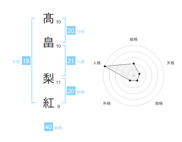 髙畠 梨紅さんを姓名の画数から五運を鑑定