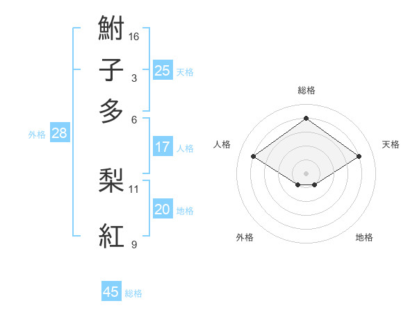 鮒子多 梨紅さんの名前の鑑定結果は!