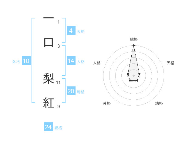 一口 梨紅さんを姓名の画数から五運を鑑定