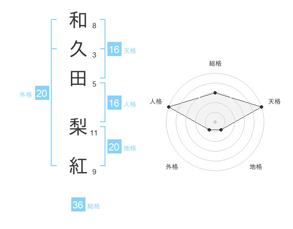 和久田 梨紅さんの天格は16画の5点!