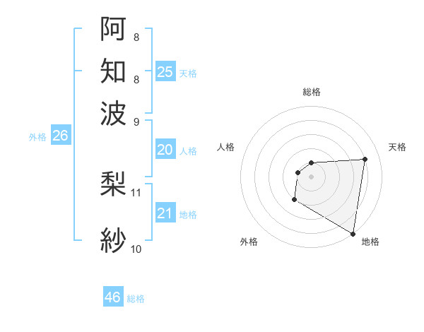 阿知波 梨紗さんを姓名の画数から五運を鑑定