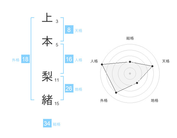 上本 梨緒さんの天格は8画の4点!