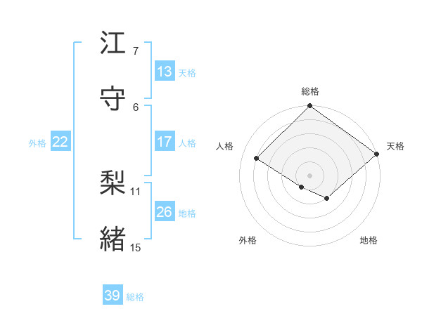 江守 梨緒さんの総格は39画の5点!