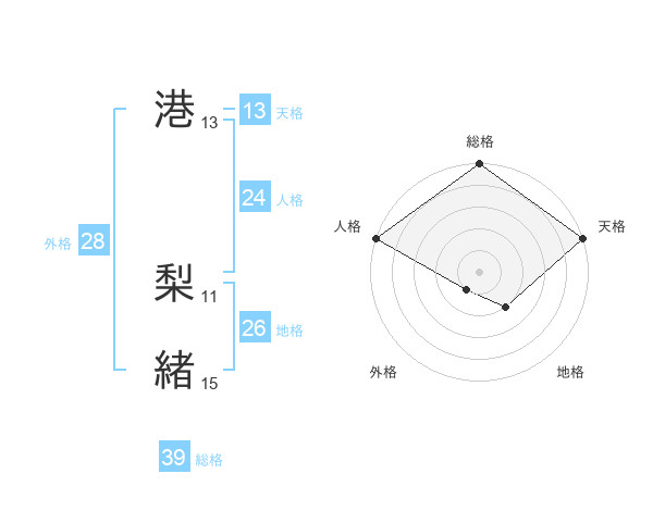 港 梨緒さんの総格は39画の5点!