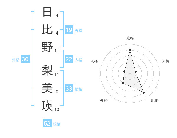 日比野 梨美瑛さんの総格は52画の4点