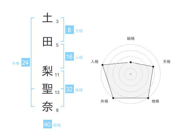 土田 梨聖奈さんを姓名の画数から五運を鑑定