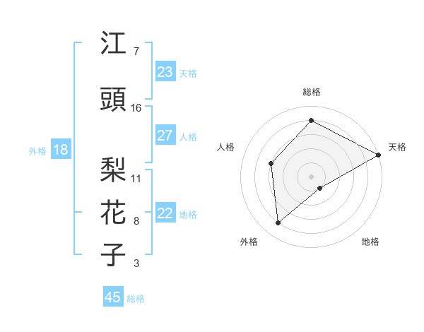 江頭 梨花子さんを姓名の画数から五運を鑑定