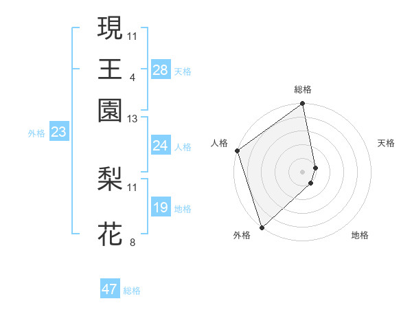 現王園 梨花さんを姓名の画数から五運を鑑定