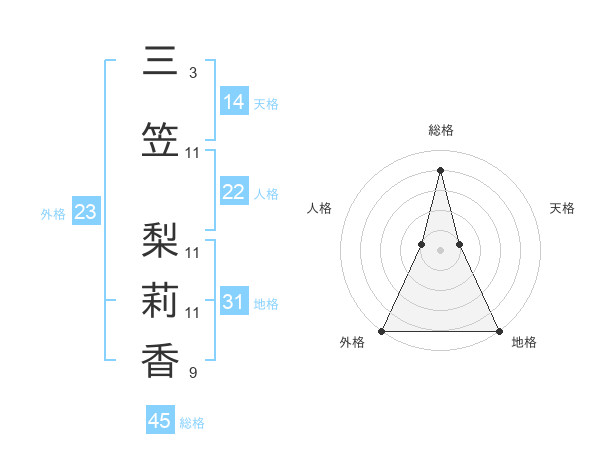 三笠 梨莉香さんを姓名の画数から五運を鑑定