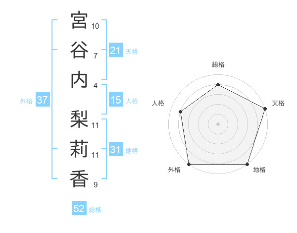 宮谷内 梨莉香さんを姓名の画数から五運を鑑定