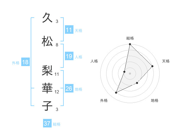 久松 梨華子さんの総格は37画の5点!