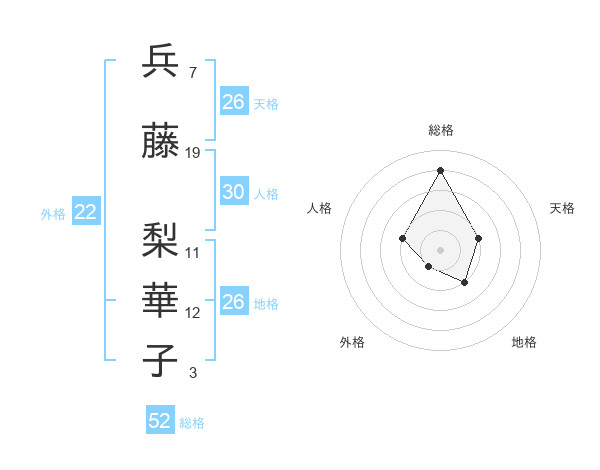 兵藤 梨華子さんを姓名の画数から五運を鑑定