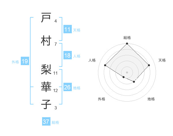 戸村 梨華子さんを姓名の画数から五運を鑑定