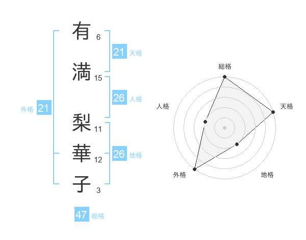 有満 梨華子さんを姓名の画数から五運を鑑定