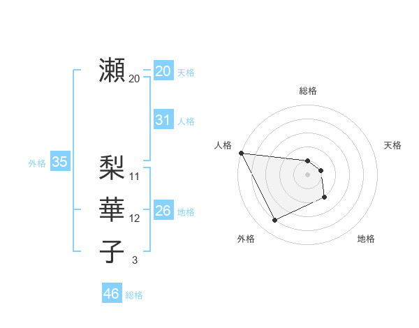 瀬 梨華子さんを姓名の画数から五運を鑑定