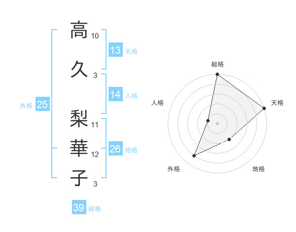 高久 梨華子さんの総格は39画の5点!