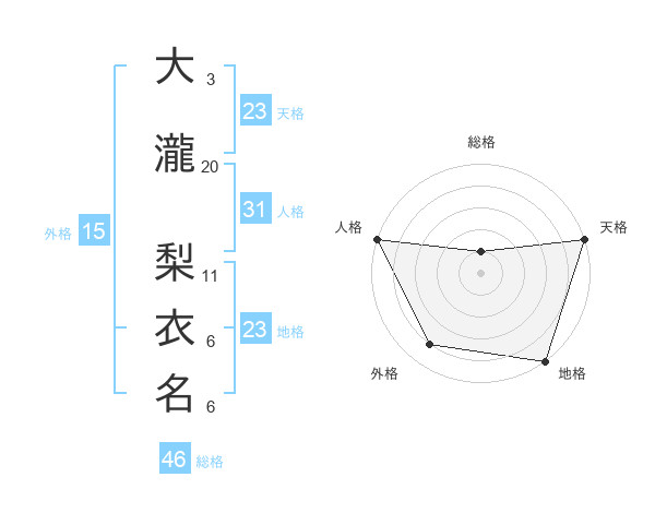 大瀧 梨衣名さんを姓名の画数から五運を鑑定