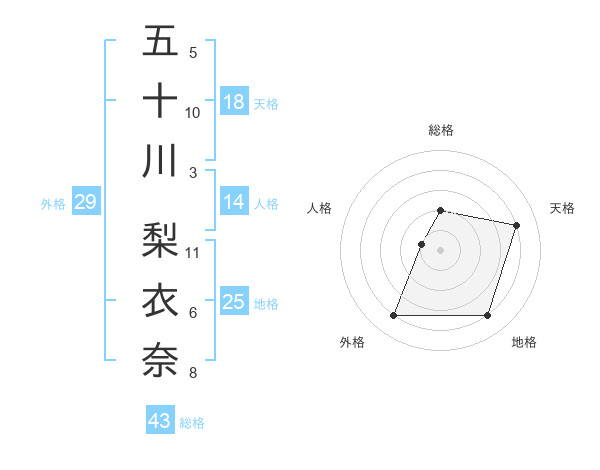 五十川 梨衣奈さんを姓名の画数から五運を鑑定