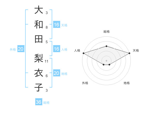 大和田 梨衣子さんの天格は16画の5点!